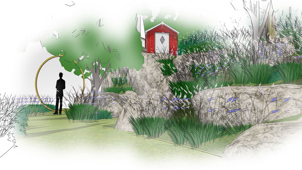 This design with a kitchen garden is on the west coast of Sweden and overlooks an archipelago of islands. Naturally occurring glacial surface rock makes for an interesting terrain with plenty of space for plants and trees as well as the kitchen garden and terraces nestled in amongst the rock outcrops including, at a higher level, a terrace that opens up to the incredible view towards the sea.