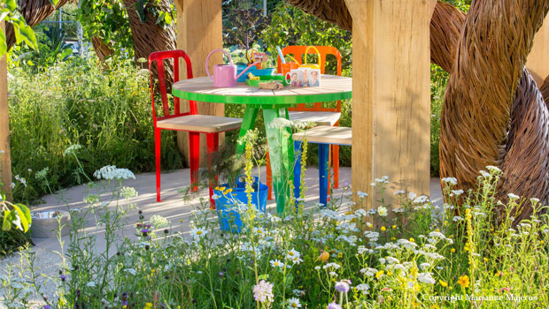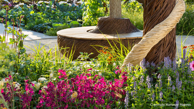 The members, volunteers and staff are an inspiring community that come together to ensure veterans recover their independence and discover a life beyond sight loss. Our garden for the Hampton Court Palace Flower Show for the charity reflects this sense of community, exploring many different aspects of what they do – bringing people together, supporting passive and active therapy, providing vital life skills and independence, offering learning, training and recreation opportunities.