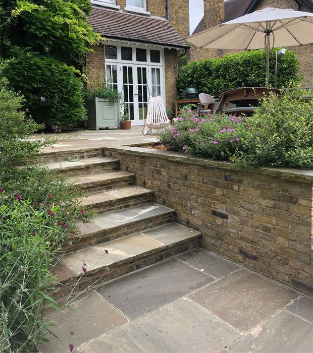 Many gardens have challenging slopes not just away from the house but often from one side to another. This garden is a perfect example of a family garden on different levels where our client wanted to create as much usable level space especially for children’s play. What it means is that we need to put extra attention into the level changes, utilising what we have on site and maximizing the space for terraces and year round planting interest.