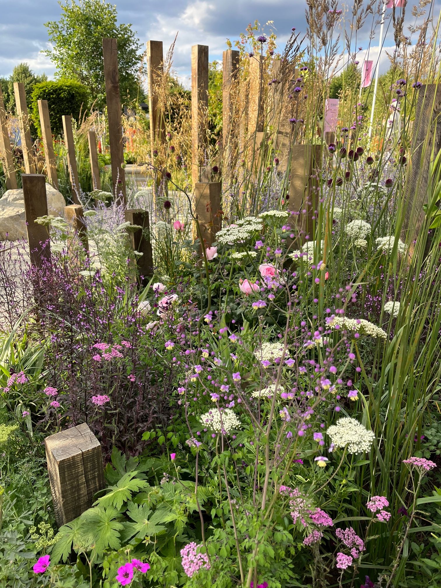 The planting was sublime with a range of beautiful perennials such as Achillea ‘Walter Funke’, Astrantia major ‘Ruby Wedding’, Eryngium yuccifolium, Verbena ‘Bampton’ and trees including Tilia henryana and Prunus incisa ‘Kojo-No-Mai’.