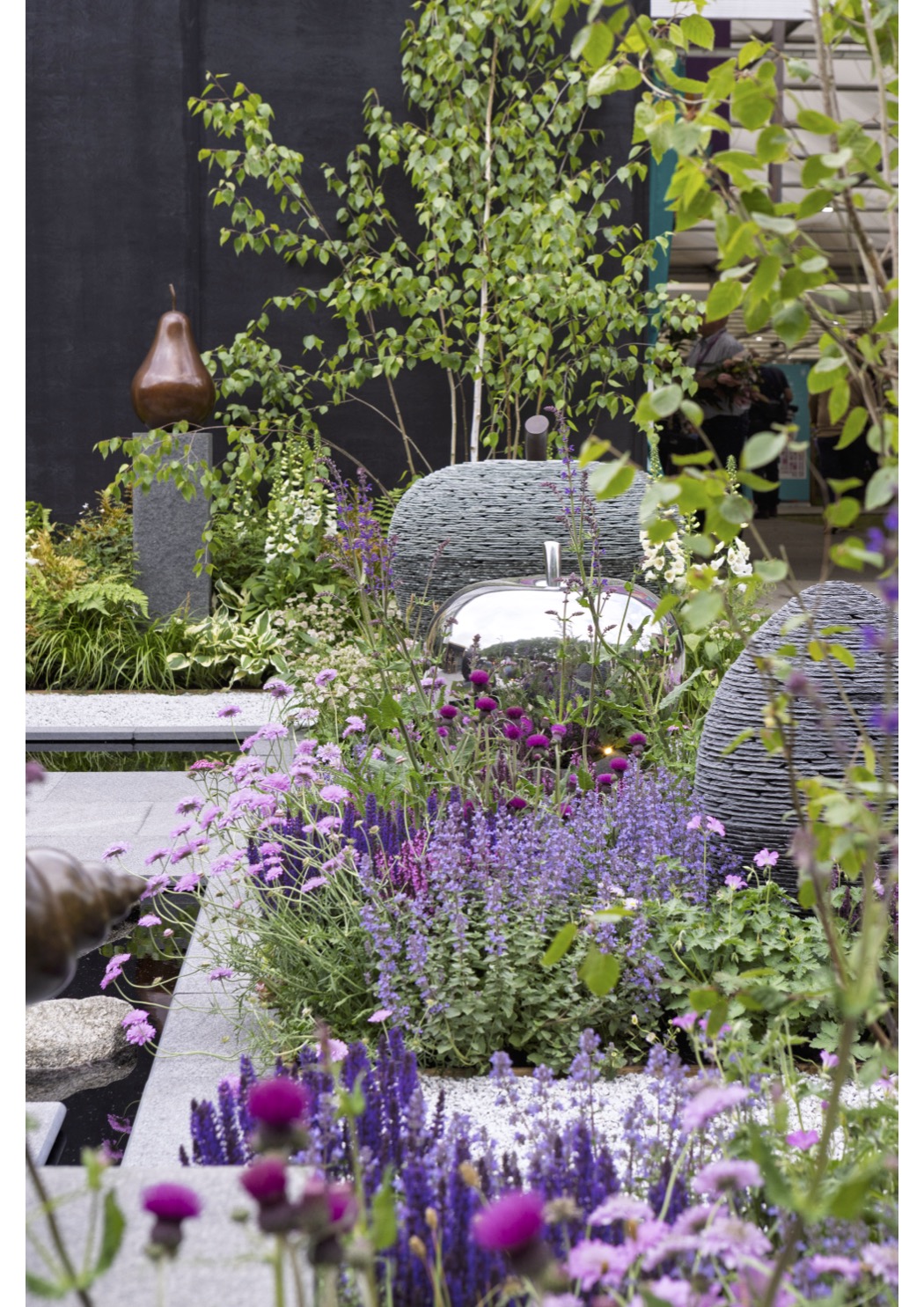 Inspired by the unique natural landscape of Galloway, the design celebrates the heather moorlands and wooded valley glades and combines them with James’ exquisite sculptures to create a Scottish Sculpture Garden. James’ sculpture is centre stage within the beautiful garden setting. A small piece of Galloway is brought to Chelsea.