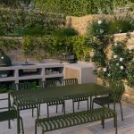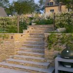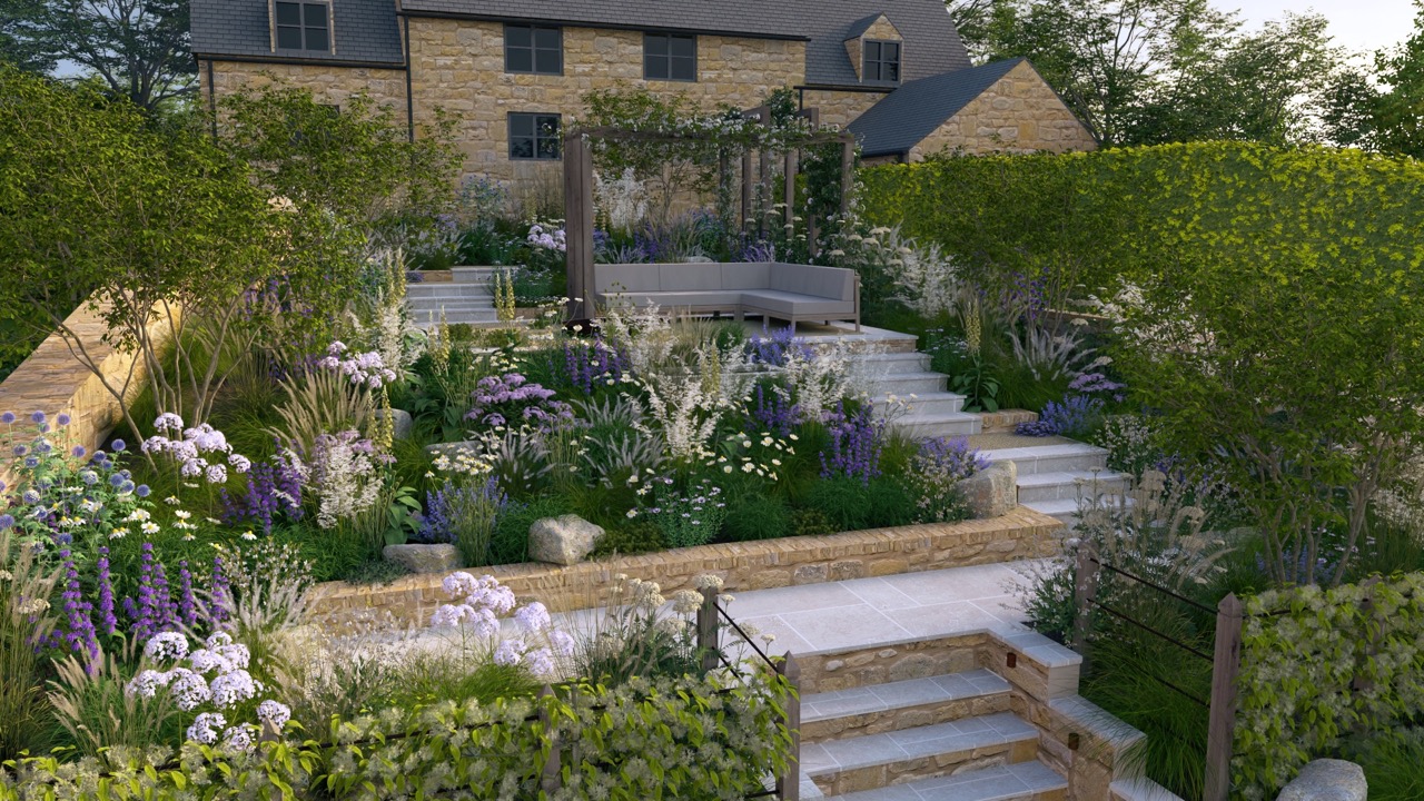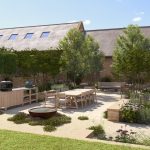 This steeply sloped Cotswolds garden has two distinct areas; the ‘courtyard’, for outdoor cooking and dining and the sloped ‘upper garden’, designed to maximise key views out towards the landscape.