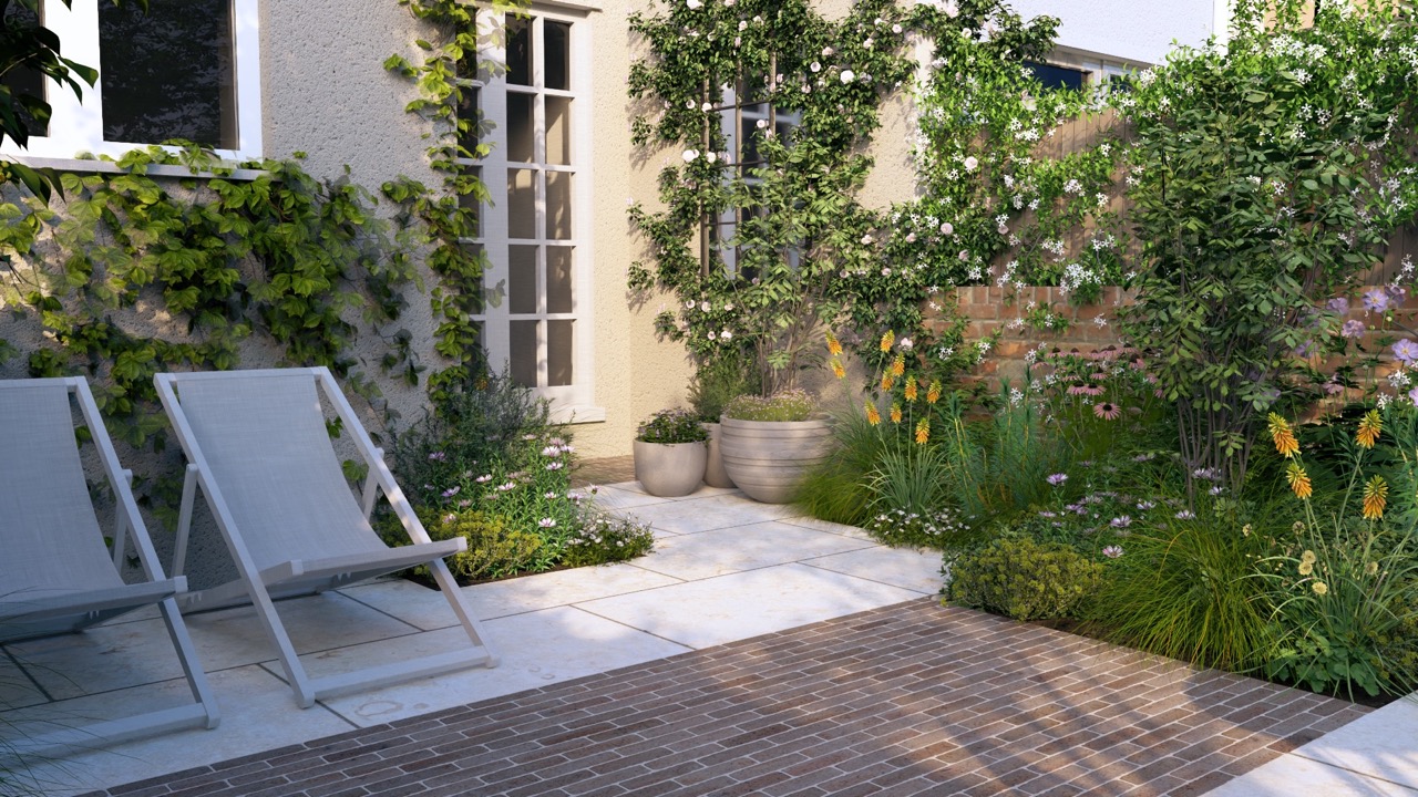It is a south-facing garden and the simple design allows furniture to be moved into sunny or shady positions at different times of the day.
