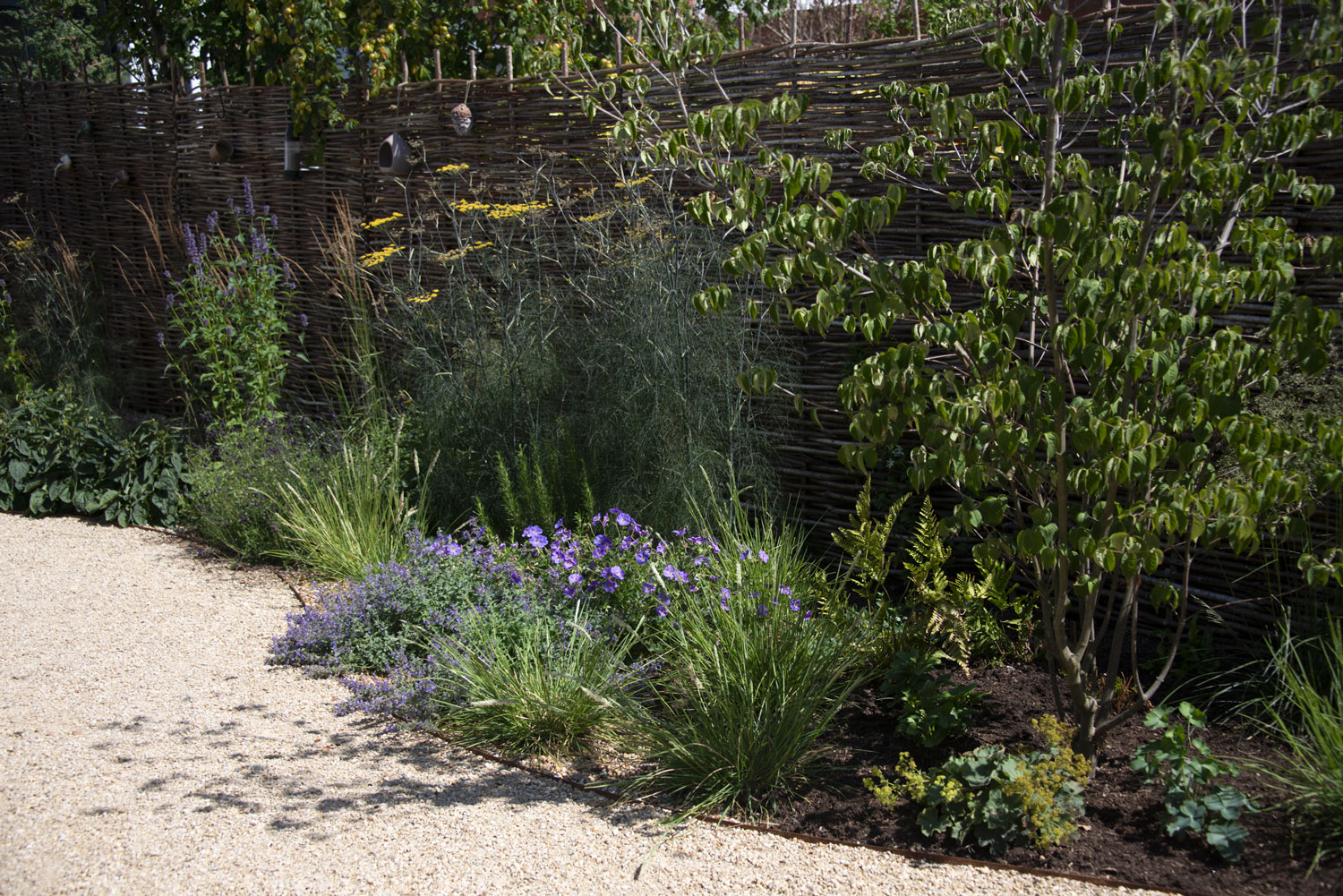 Her planting schemes are designed to provide interest throughout the year with a display of colour, texture, blossom and berries revealing the beauty of the changing seasons. Biodiversity is at the heart of each scheme, with planting chosen to provide food for wildlife as well as habitat space.